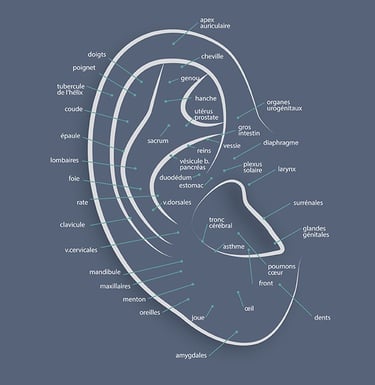 L'auriculothérapie est une technique réflexe qui utilise le pavillon de l'oreille comme une carte du corps humain. En effet, l'oreille contient plus de 200 points spécifiques, chacun en lien avec un organe, une articulation ou une fonction du corps. En stimulant ses points précis, on peut agir à distance sur différentes zones corporelles, apaiser les tensions, soulager les douleurs et réguler certains déséquilibres. C'est une approche douce et naturelle qui vise à rétablir l'équilibre globale du corps.