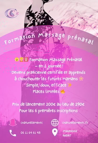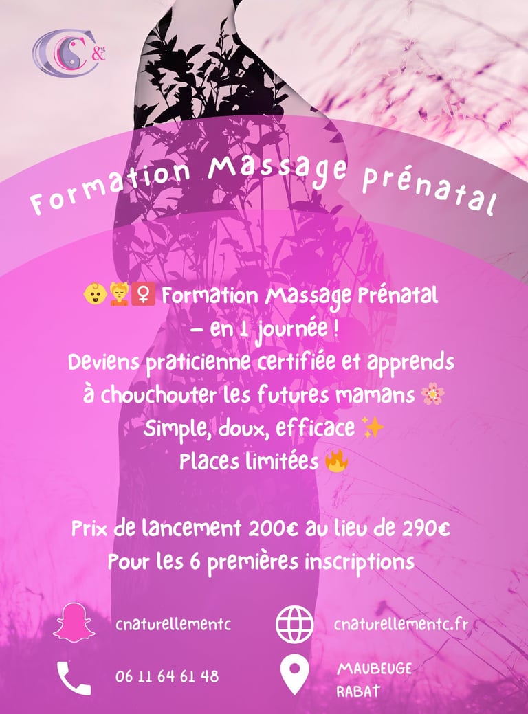 Deviens praticienne en massage prénatal grâce à une formation certifiée, bienveillante et enrichie par 12 années d'expérience dans l'accompagnement du corps et du bien-être.